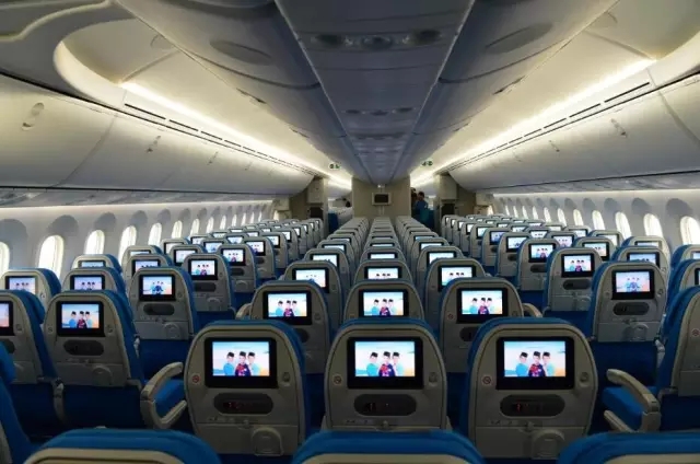 據(jù)介紹,B787-9可以搭載287名旅客,比B787-8的237個座位多出21%。在客艙布局方面取消了頭等艙的座位,改由30個商務(wù)艙和257個經(jīng)濟艙組成。