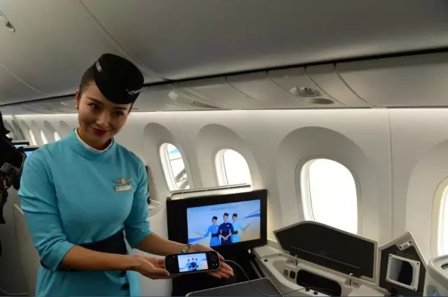 這架B787-9型飛機在客艙內(nèi)可實現(xiàn)空地互聯(lián),旅客在飛機進入平飛狀態(tài)后,可利用電腦、iPad等設(shè)備連接客艙內(nèi)Wi-Fi信號,體驗收發(fā)郵件、購物、微信等網(wǎng)絡(luò)服務(wù)。