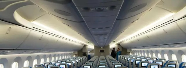 動態(tài)LED照明能夠模擬全天不同時間的自然光,幫助長途飛行中的旅客調(diào)節(jié)生物鐘。
